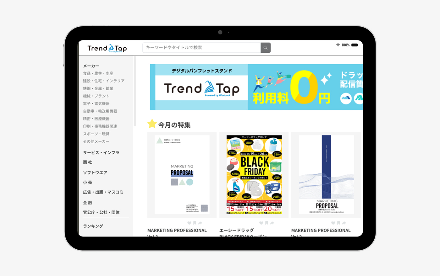 TrendTap(トレンドタップ)はパンフレットやチラシなどの告知情報をデジタルブックとして簡単にWEB配信できるサービスプラットフォームです。