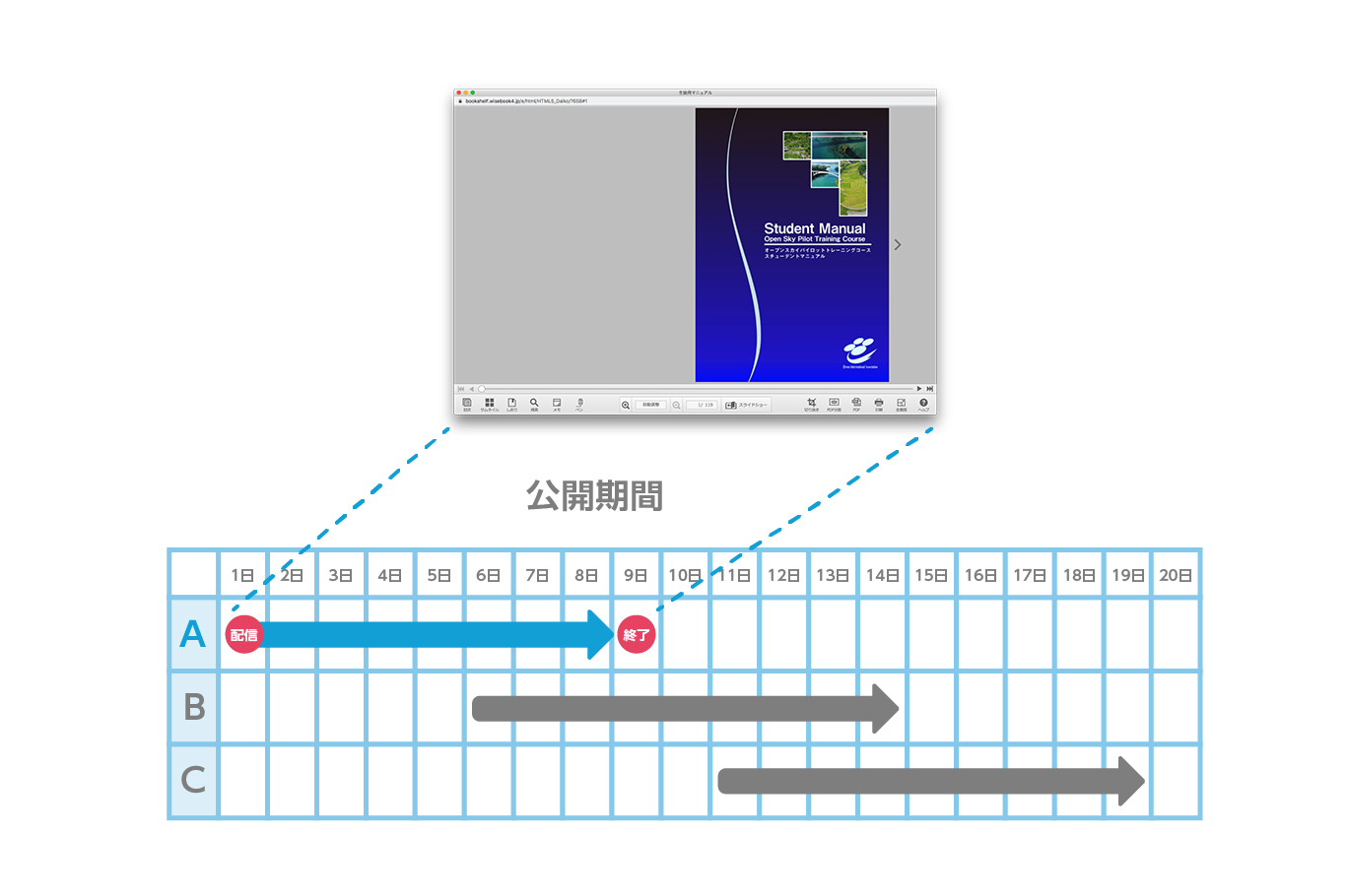 e-bookを制限なしに一般公開するか、IDパスワードで制限公開するかを選んで配信することができます。