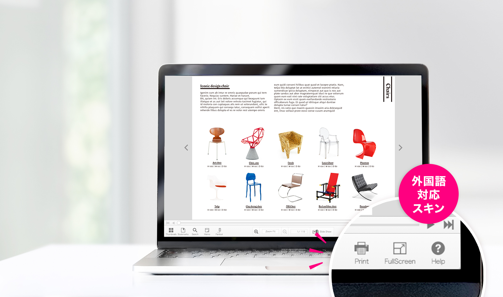 日本語、中国語、英語、韓国語の4カ国語スキンの電子カタログをかんたん2ステップで作成。ご要望に応じた言語に変更する追加カスタマイズも可能。製品情報の更新はページ差し替えですぐに対応できます。